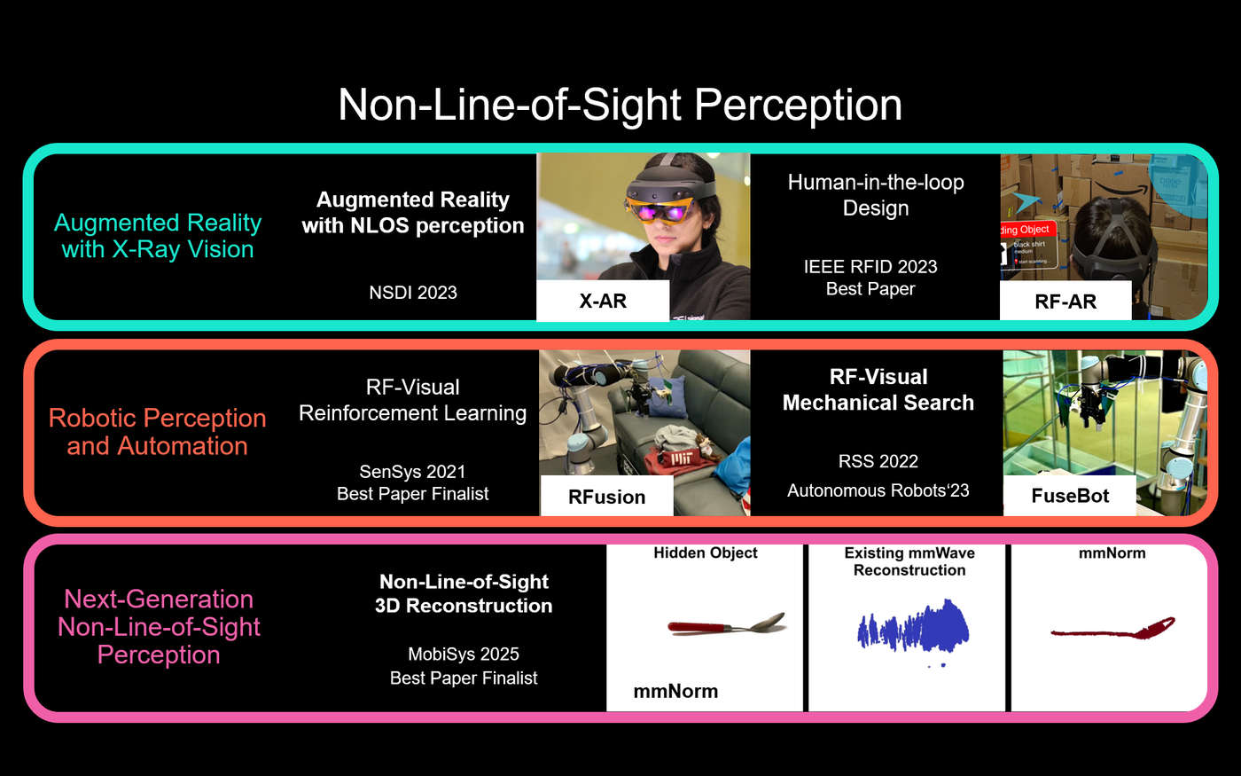 Professor Danielle Wood, director of the Space Enabled group, shared her interdisciplinary work on space technology and sustainability, highlighting applications that support environmental monitoring and energy transition. Graduate student Laura Dodds from the Signal Kinetics group presented innovations in RF sensing and augmented reality, including RFusion and robotic X-ray vision, which enable robots to locate and grasp objects using RF and visual data—technologies with strong implications for logistics, manufacturing, and automation.